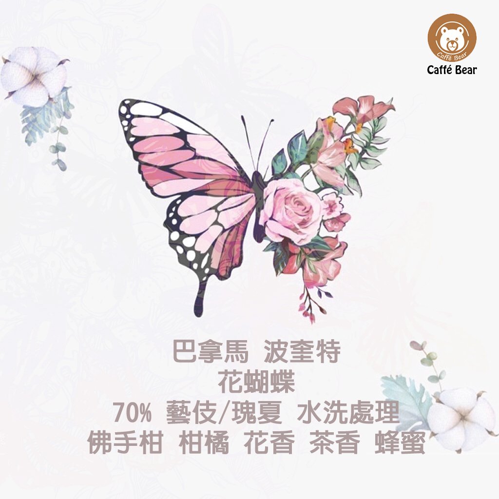 花蝴蝶 🔹《70%藝伎、香氣持久、甜感細膩》 杯測結果:酸度4/5、甜度5/5、香氣5/5、體質感3/5、尾韻5/5、平衡性4/5 參考風味:佛手柑、茉莉花、奶油、櫻桃、蜂蜜 【生豆資訊】 品名:Panama Boquete Classico Butterfly 70% Geisha 品種:Geisha, Caturra, Catuai 產區:Boquete 海拔:1400 - 1700 m 處理法:水洗 烘焙度:淺中焙 花蝴蝶有著70%的瑰夏優質的血統,由瑰夏geisha、卡杜拉 Caturra、卡杜艾Catuai三個品種組成,栽種在波奎特的巴魯火山區域, 生長在海拔1600米的火山區域,處理廠採用精細的水洗處理,巴拿馬當地特殊的微氣候導致本區的降雨量充沛,且晝夜溫差大,再加上火山地區的特有火山岩土壤,以及細緻的採收和精細處理,使這支咖啡無論在厚實度、酸質、花香上表現都相當出色。 更令人驚喜的是,在非常優秀的品質基礎上,非常親民的價格讓這支咖啡豆的性價比爆表。這支咖啡豆的特別之處在於有瑰夏品種,使這支咖啡帶有很明顯的瑰夏風味。 花蝴蝶是拼配豆嗎? 經查閱得到的資料顯示,由於該莊園的歷史原因,在當時為了追求產量,早期的瑰夏品種與卡杜拉、卡杜艾這兩個品種的咖啡樹混合種植在一起,為了便於採摘,咖啡農就不重新做分類,而是三個品種直接混合處理。 【產區簡介】 Boquete是高海拔的火山區,因為巴魯火山(Baru Volcano)帶來相當肥沃的土壤,高聳的地形、溼冷的空氣、日照不同、豐沛雨量,有河匯流經過其中,造就出優質的巴拿馬精品咖啡。這一批來自於和翡翠莊園同一產區種植的咖啡,剛好位在有著連續的山谷和山脊,因此形成好幾種微氣候,不同區塊生產的咖啡,風味都各有特色! 『花蝴蝶Butterfly』是Black Gold Specialty Coffee與巴拿馬波奎特產區合作推出的自有品項,獨家販售,由於含有一定比例產自波奎特產區的藝妓品種,和名聞遐邇的翡翠莊園相同產區,自推出以來大受歡迎。 雖然產量不大,但品質穩定,也能兼顧生態環境以及土壤質量的保持與維護。清爽舒適的柑橘感,明亮花樣般的南洋水果感覺,纖細的花香交錯著散發出非常高雅大方的風味。